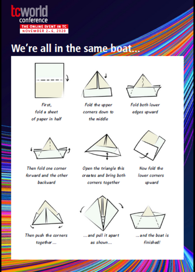 With this in mind, many folding-boat builders entered the virtual tcworld conference yesterday in the spirit of cohesion! With fun, creativity and motivation, many participants designed their very own personal folding boats and shared these funny, playful and surprisingly versatile creations via social media.